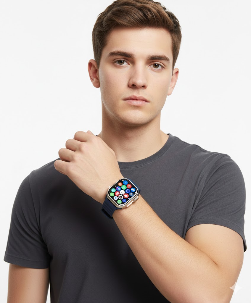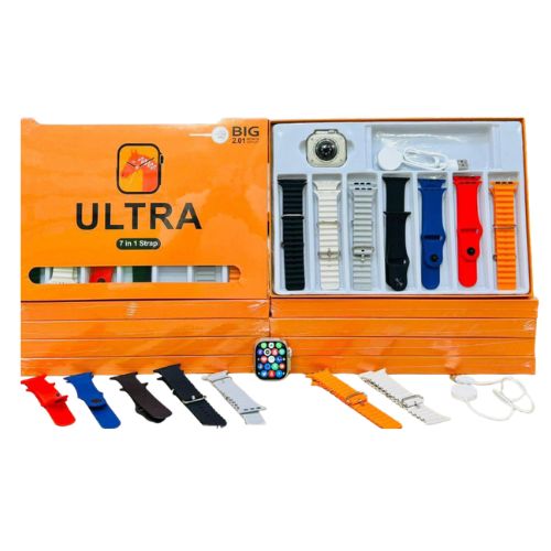 استمتع بتجربة ذكية متكاملة مع ساعة سمارت الترا بيج التي تأتي بشاشة كبيرة واضحة وتصميم رياضي عصري يناسب الاستخدام اليومي والأنشطة الرياضية. تتميز الساعة بمجموعة من 7 أساور ملونة لتغيير المظهر حسب ذوقك ومناسبتك، مع دعم كامل للاتصال بالهواتف التي تعمل بنظام أندرويد وiOS.