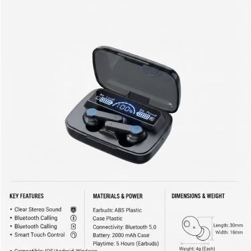 استمتع بتجربة صوتية مذهلة مع سماعة بلوتوث M19 اللاسلكية، المصممة لتقديم جودة صوت ستيريو واضحة ونقية. تأتي السماعة مع علبة شحن عملية لتسهيل حملها وشحنها في أي مكان. تصميمها العملي والمريح يجعلها مثالية للاستماع للموسيقى، المكالمات، والعمل أثناء التنقل. توفر اتصال بلوتوث مستقر وسريع مع جميع الأجهزة الذكية، بالإضافة إلى بطارية تدوم لساعات طويلة لتبقيك مستمتعاً بالصوت دون انقطاع.