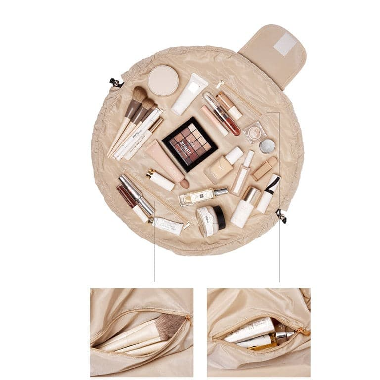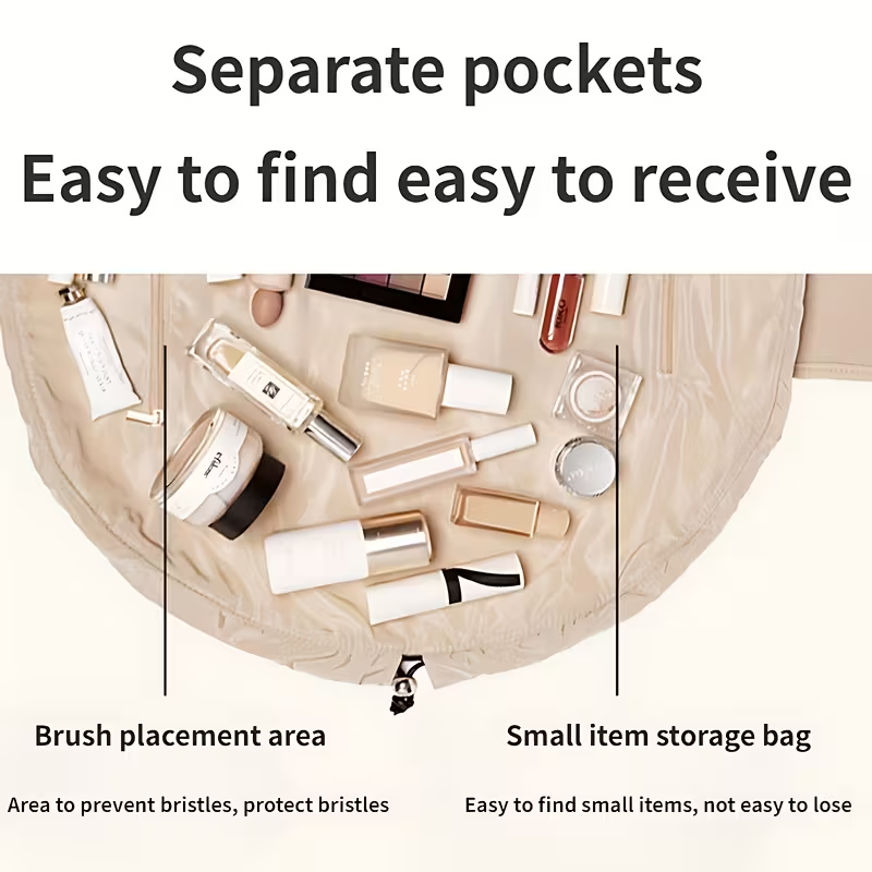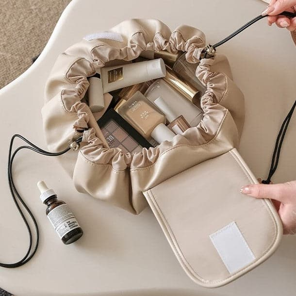 بفضل تصميمها بخيط شدّ، الشنطة بتتفتح وتتقفل بسرعة وبتساع كل مستحضراتك من مكياج وعناية شخصية وأدوات التجميل.